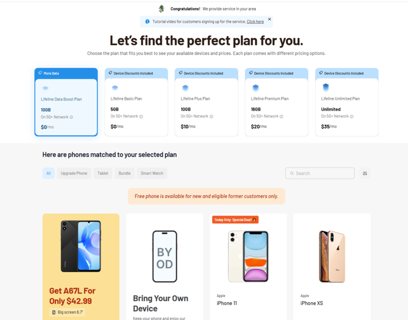 You can now review the different Lifeline plans in your region and select the one that best meets your needs.