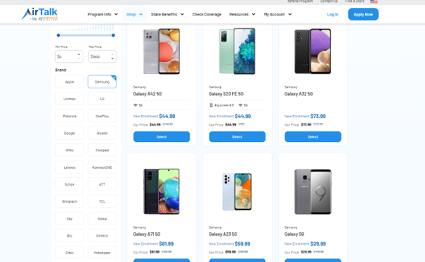 List of Samsung phones at AirTalk Wireless (Example price in Oklahoma)