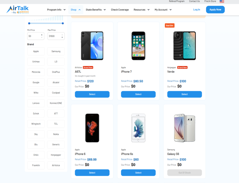 Some of the phone models at AirTalk Wireless you can view, the models depend on ZIP code, eligibility status, and current inventory.