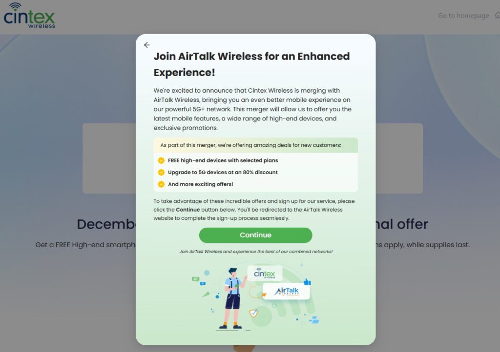 You are redirected to AirTalk Wireless because Cintex Wireless is merging with AirTalk Wireless. Most ZIP code checks, device selections, and new applications now move to AirTalkWireless.com. AirTalk also offers a larger device inventory, stronger 5G+ network support, faster approval, and more iPhone options. The merge helps users apply more easily and get better service.